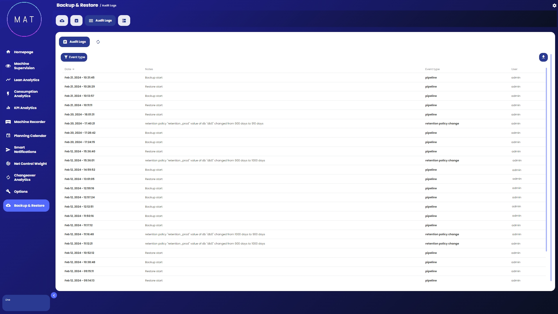 Benvenuti nella documentazione ufficiale di MAT - Machine Analytics Tool.