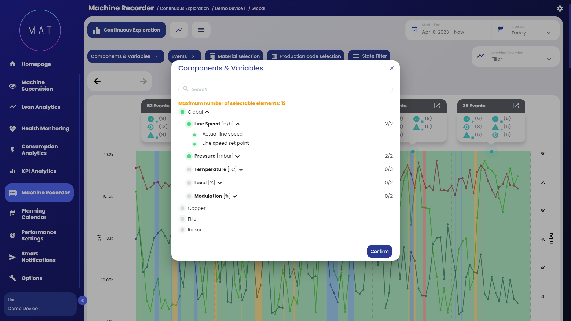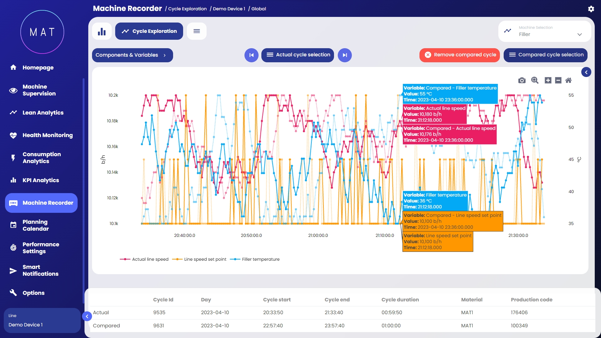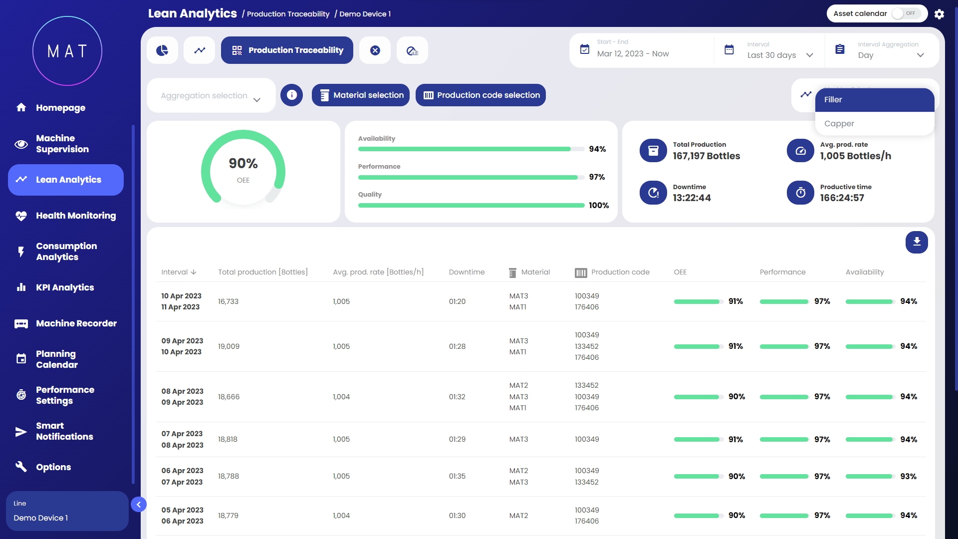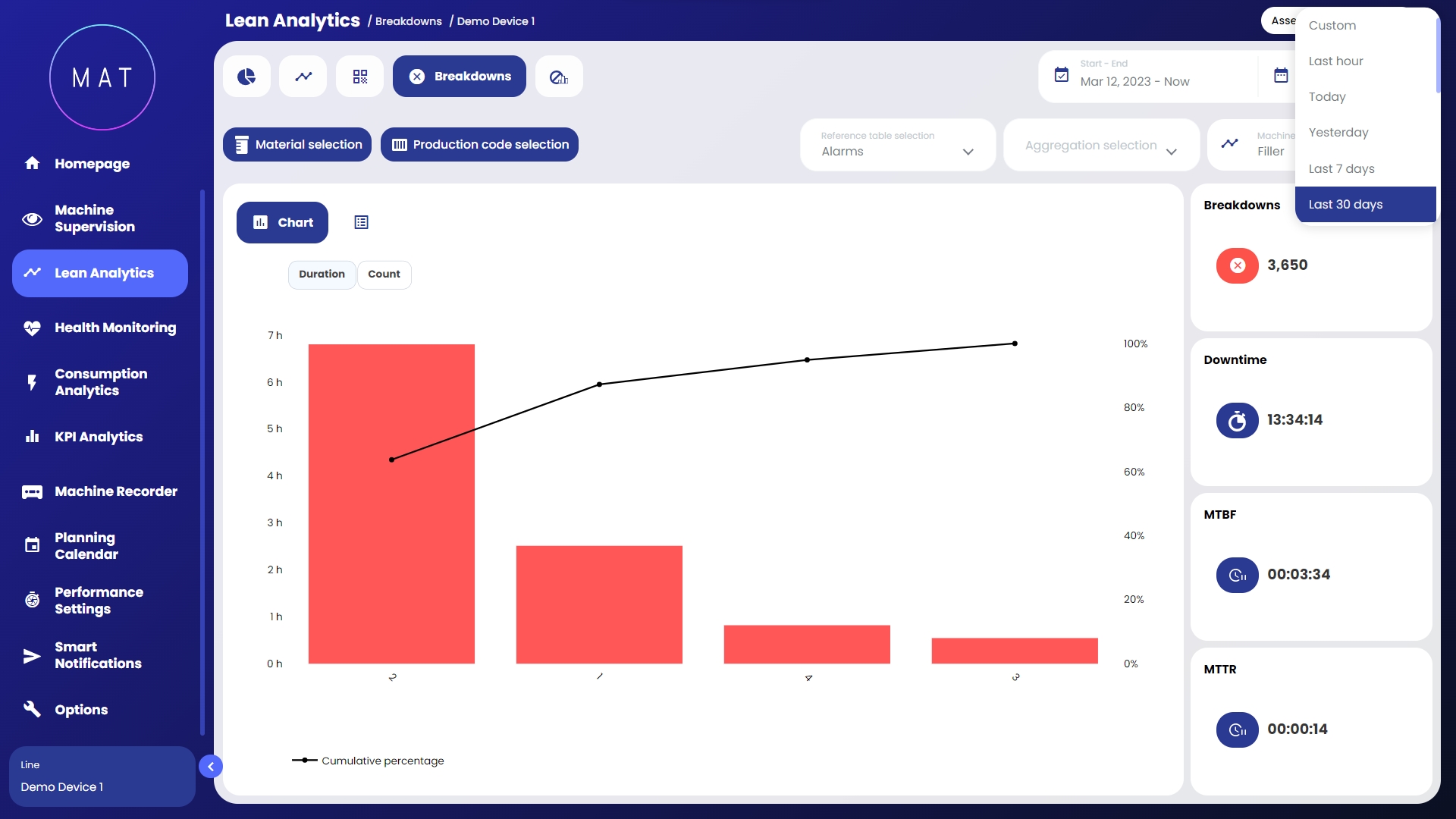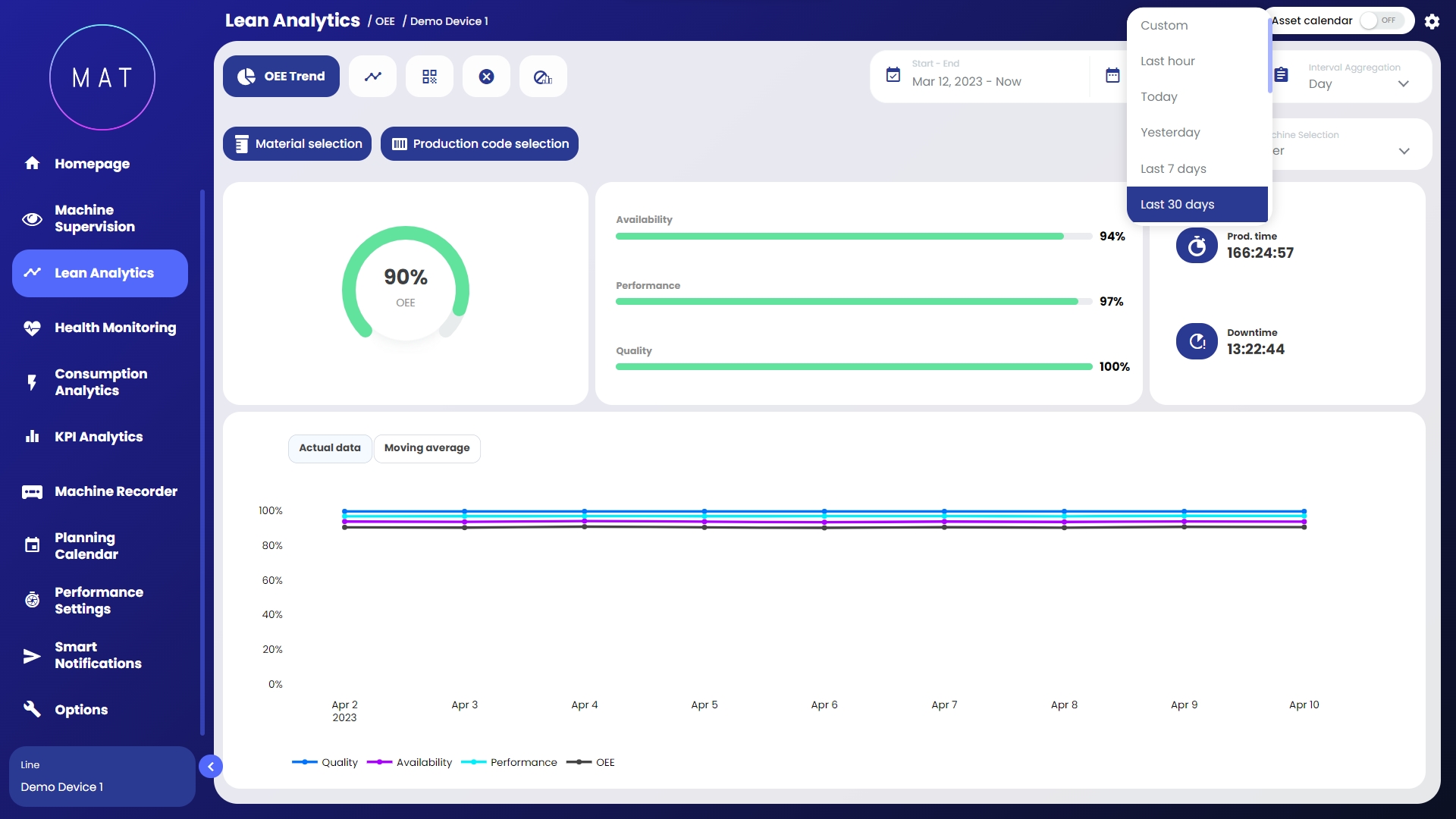 MAT - Machine Analytics Tool di 40Factory è la soluzione Industrial AIIoT (Artificial Intelligence Internet of Things) per la gestione dei diversi aspetti di macchine e linee connesse, tra cui: