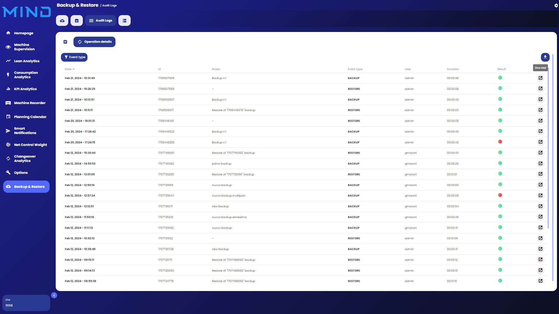 La pagina dedicata al Registro di Audit permette di visualizzare lo storico delle attività che sono state svolte relativamente ai backup.