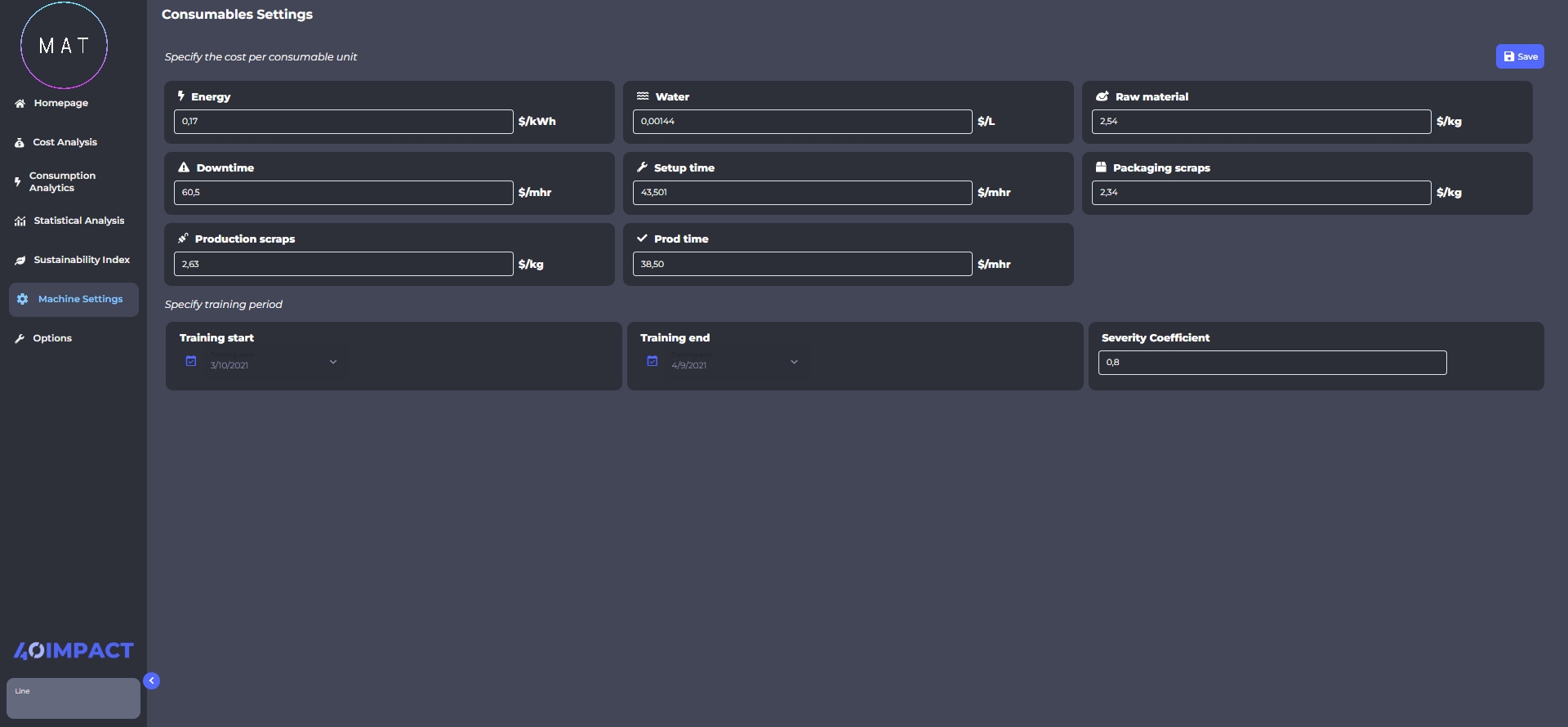 In questa pagina è possibile impostare, per ogni variabile che vuole essere assunta come consumabile, il costo per unità che viene sostenuto per il suo utilizzo.