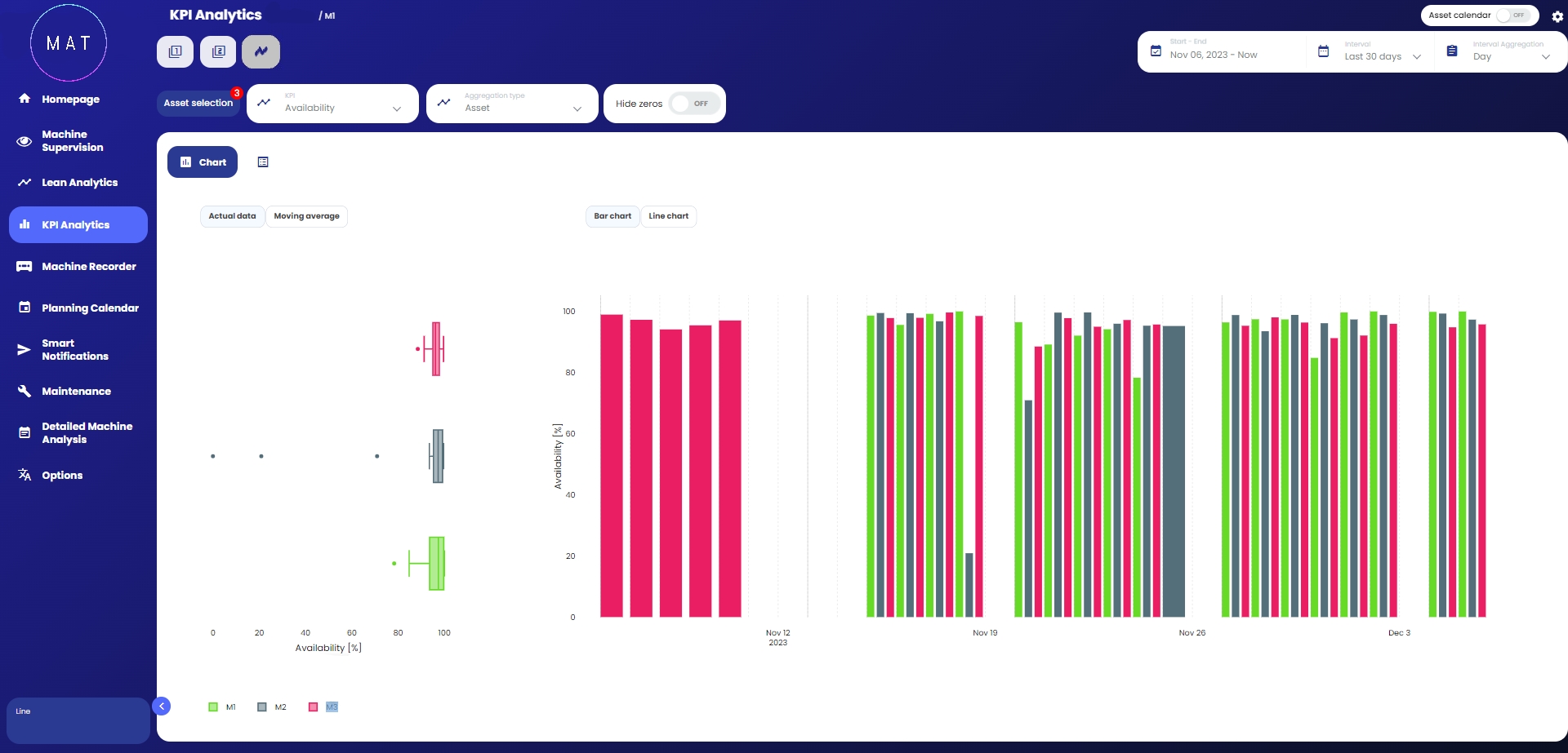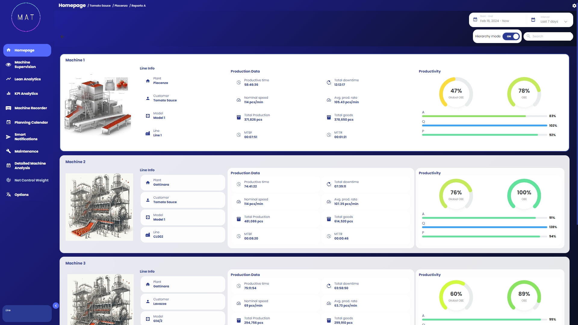 OEE e OEE Globale: la nuova versione di MAT supporta il calcolo di due diversi OEE (normale e globale), così come la Disponibilità Globale.