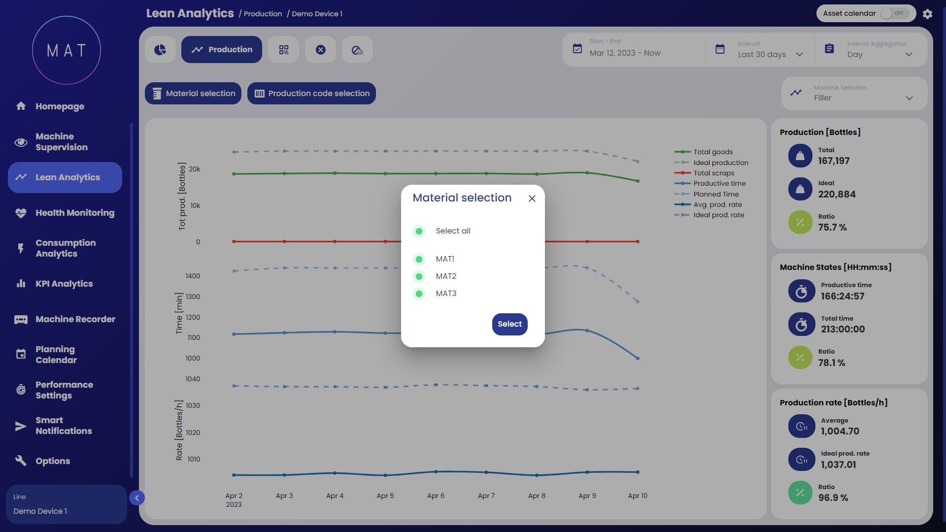 Fleet KPI: MAT 2.0 consente il confronto e l'aggregazione di KPI tra diversi asset all'interno dello stesso tenant.