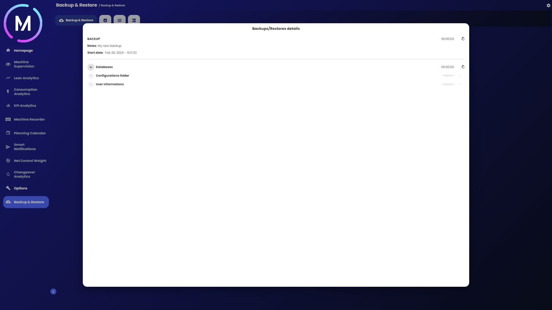 Esso consente di pianificare e gestire le attività di manutenzione ordinaria e straordinaria, di registrare le attività manutentive eseguite su macchine e impianti, così come gli eventi critici avvenuti.
