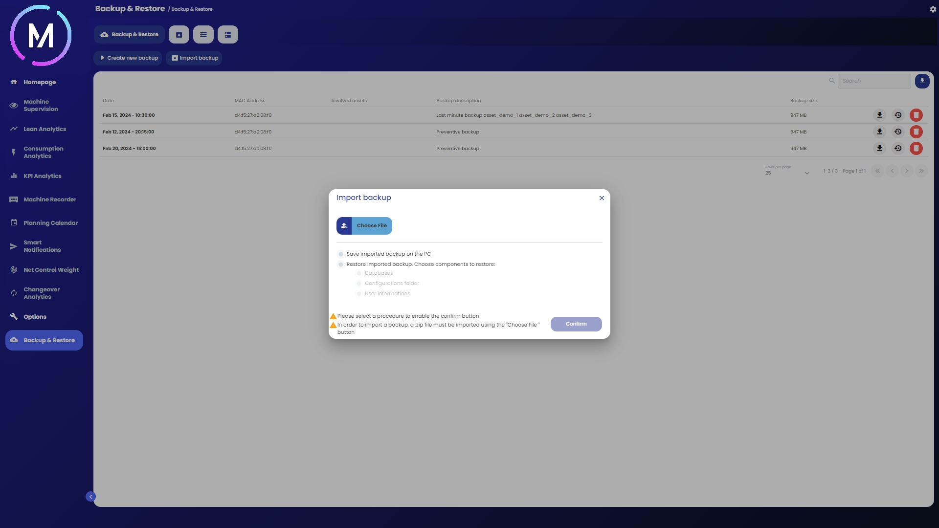 Eliminazione di Elementi Non Presenti in File Excel per il Modulo Manutenzione: a seguito di questo rilascio, nel modulo di Manutenzione sarà possibile eliminare componenti, attività e cause di sostituzione tramite il caricamento di file Excel. Ogni volta che verrà caricato un Excel, gli elementi non presenti nel file, ma già presenti nella pagina verranno eliminati previa richiesta di conferma all'utente;