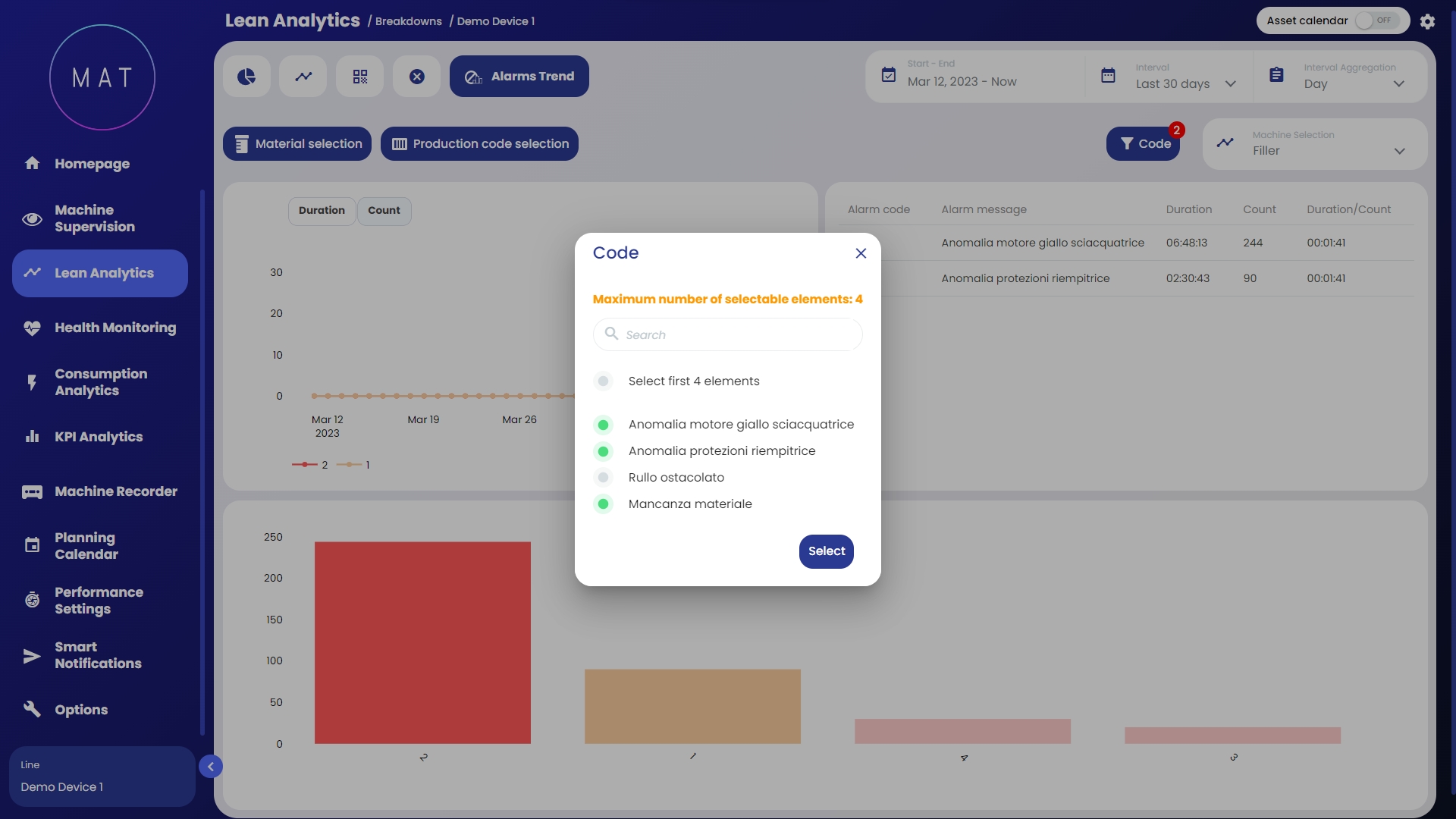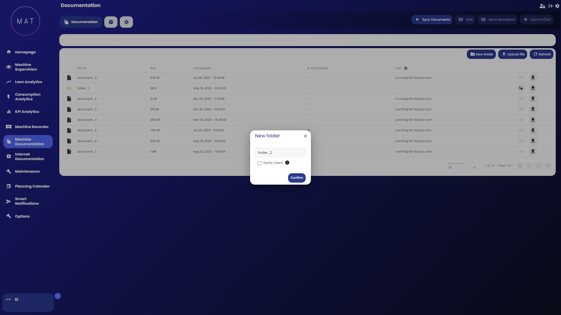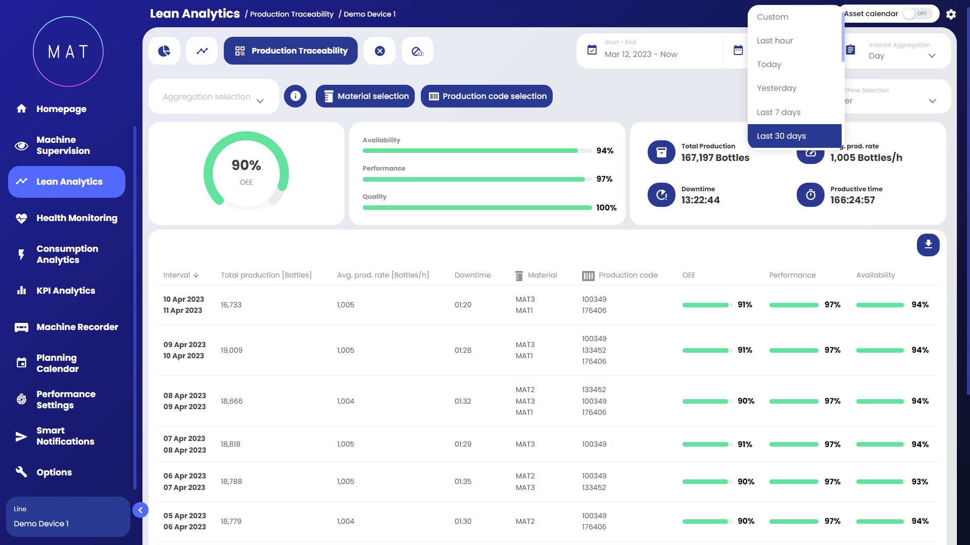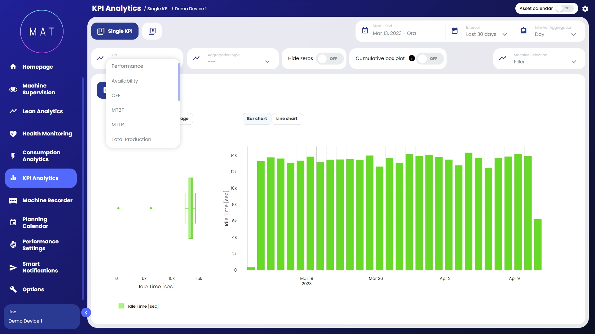 MAT - Machine Analytics Tool di 40Factory è la soluzione Industrial AIIoT (Artificial Intelligence Internet of Things) per la gestione dei diversi aspetti di macchine e linee connesse, tra cui: