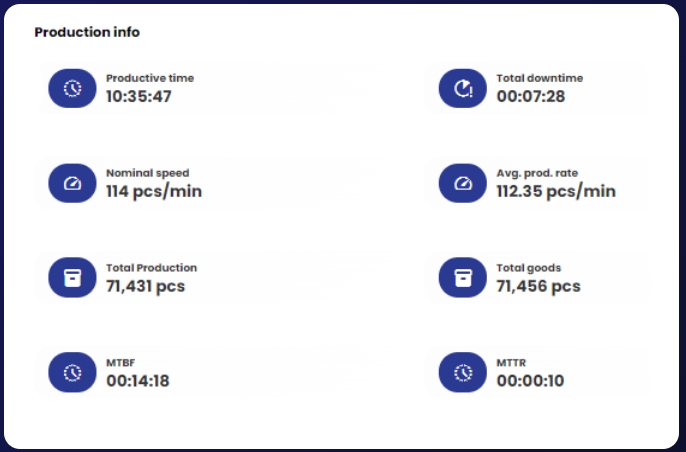I raw data di macchine e linee acquisiti, storicizzati, elaborati e trasformati in smart data sono visualizzabili e analizzabili direttamente nell’applicazione tramite dashboard realizzate con tecniche di UI/UX design finalizzate a rendere la comprensione e la navigazione semplice ed intuitiva.