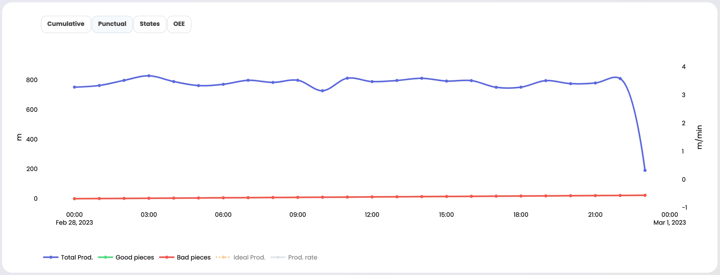 Quando previsto, l’utente può selezionare il tipo di aggregatore temporale sulla base del quale visualizzare i dati (ora/giorno/settimana/mese). Ciò consente di identificare immediatamente periodi produttivi più o meno critici che meritano di essere analizzati nel dettaglio, con il supporto dei moduli dell’applicazione.