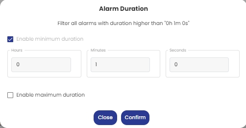 Utilizzando la barra temporale è possibile impostare un preciso intervallo temporale in termini di inizio e fine attivazione allarmi.