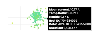 In questa pagina è possibile visualizzare, per il componente selezionato, una serie di matrici scatter che mettono in relazioni tutte le variabili descrittive di un componente fra loro. In questo modo è possibile apprezzare il legame che ogni variabile presenta rispetto alle altre ed è possibile effettuare analisi sulla dispersione per meglio comprendere il legame presente fra diversi fattori descrittivi. Ogni punto all'interno della singola matrice rappresenta un'osservazione di dati per le due variabili di competenza del grafico realizzata allo stesso istante.