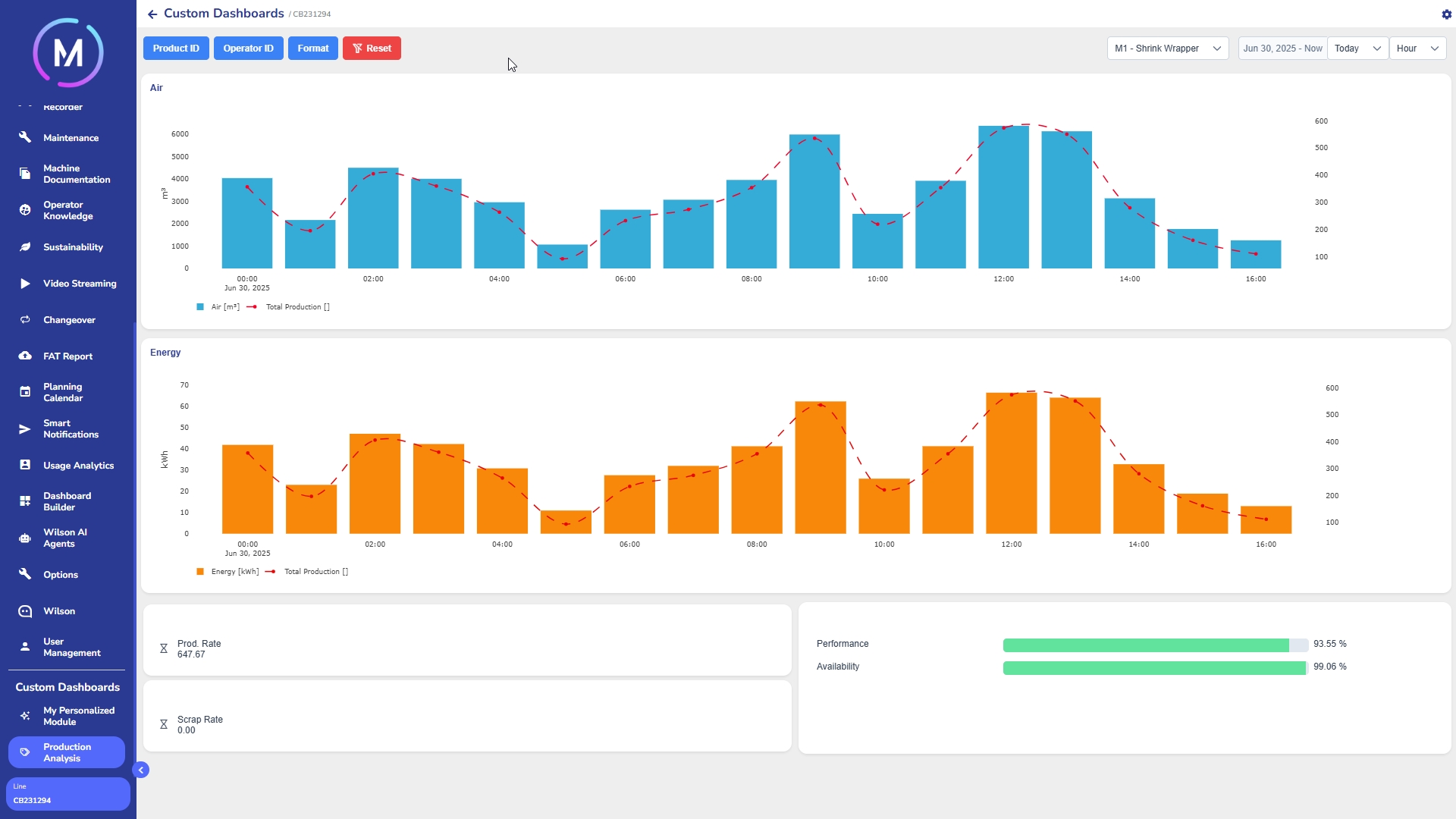 selettore macchina: consente di filtrare i dati in base alla sotto-macchina di riferimento (solo nel caso multi macchina);