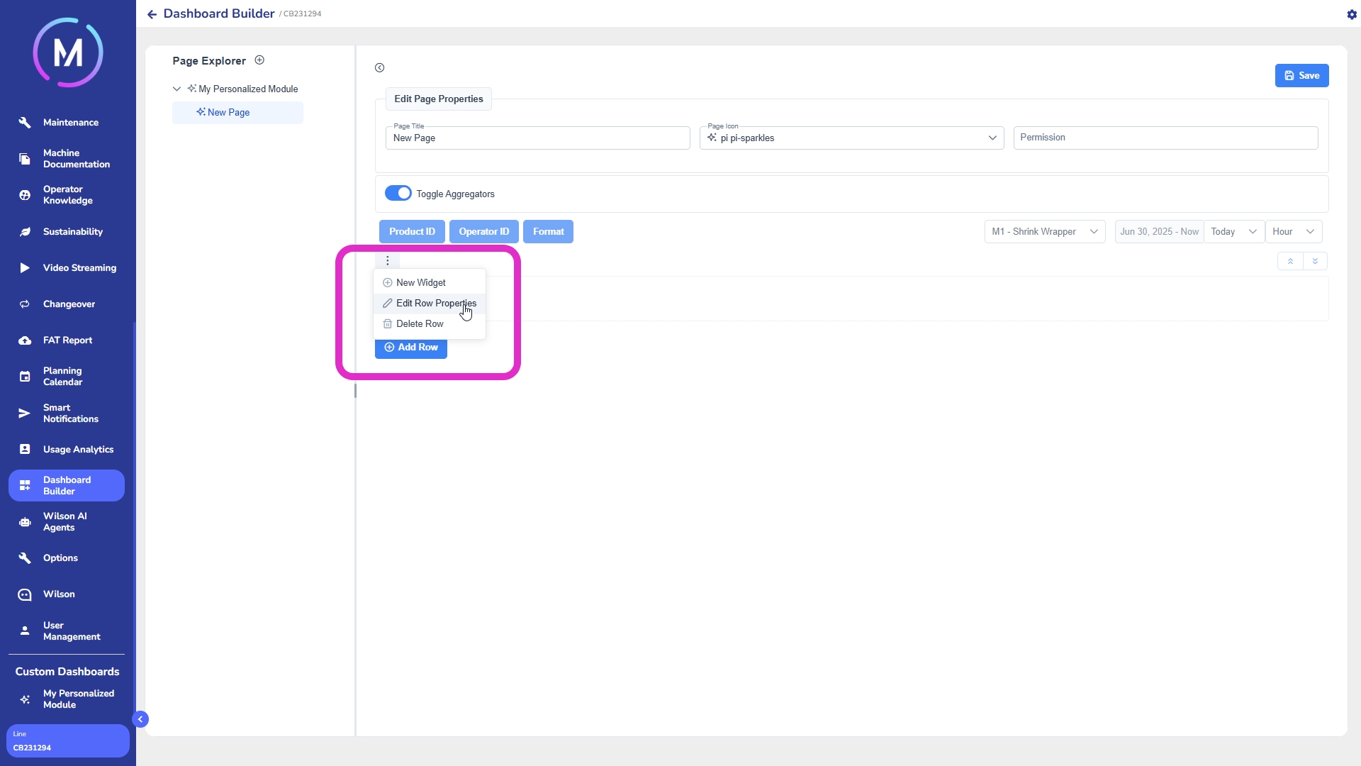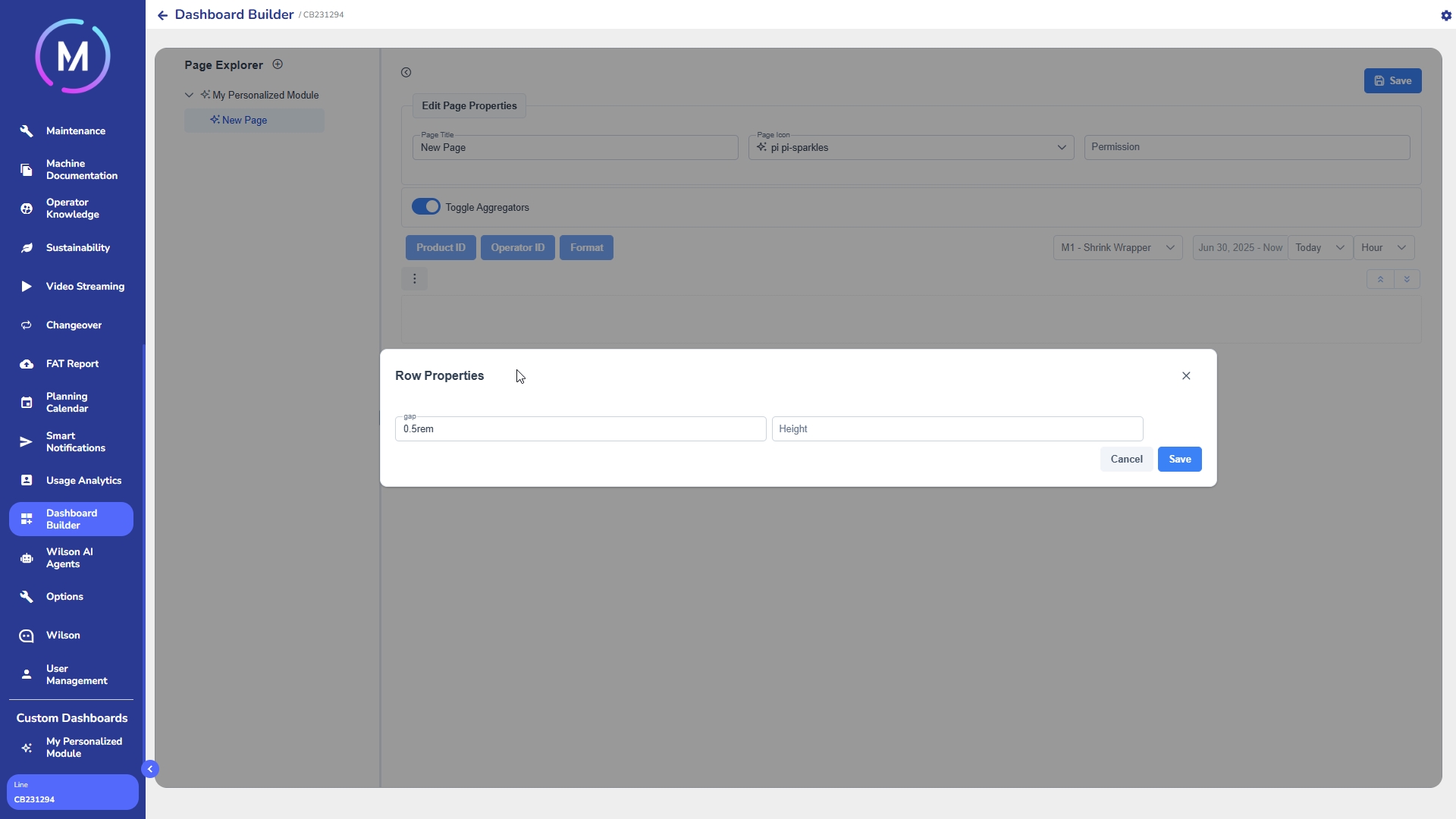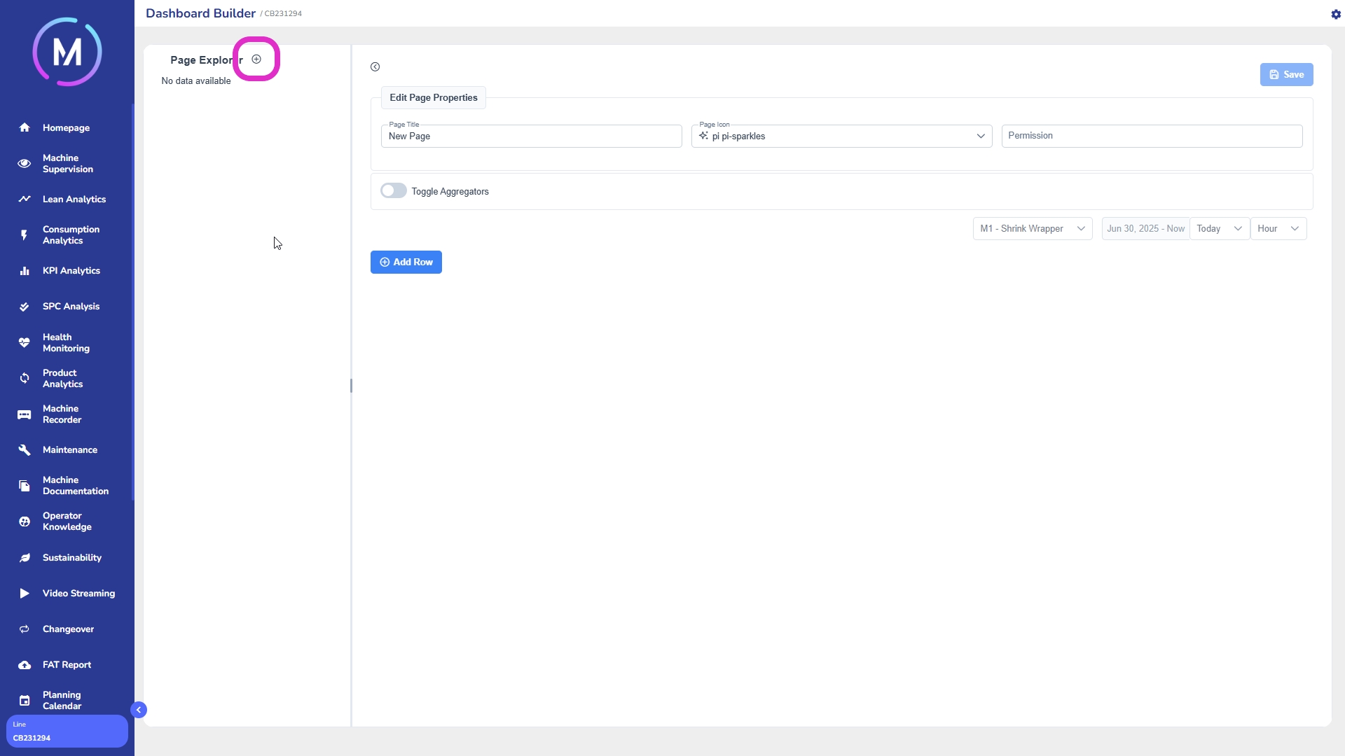 La pagina può essere popolata tramite l'aggiunta di righe. Ogni riga può contenere uno o più widget, ovvero elementi grafici che rappresentano i dati.