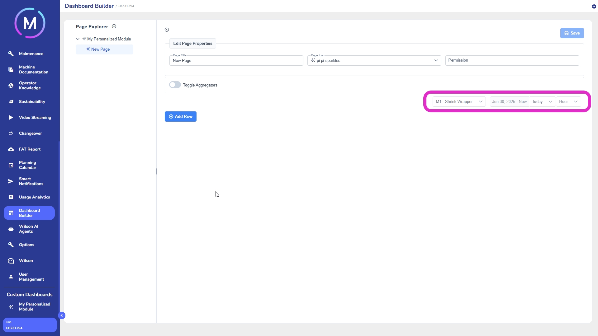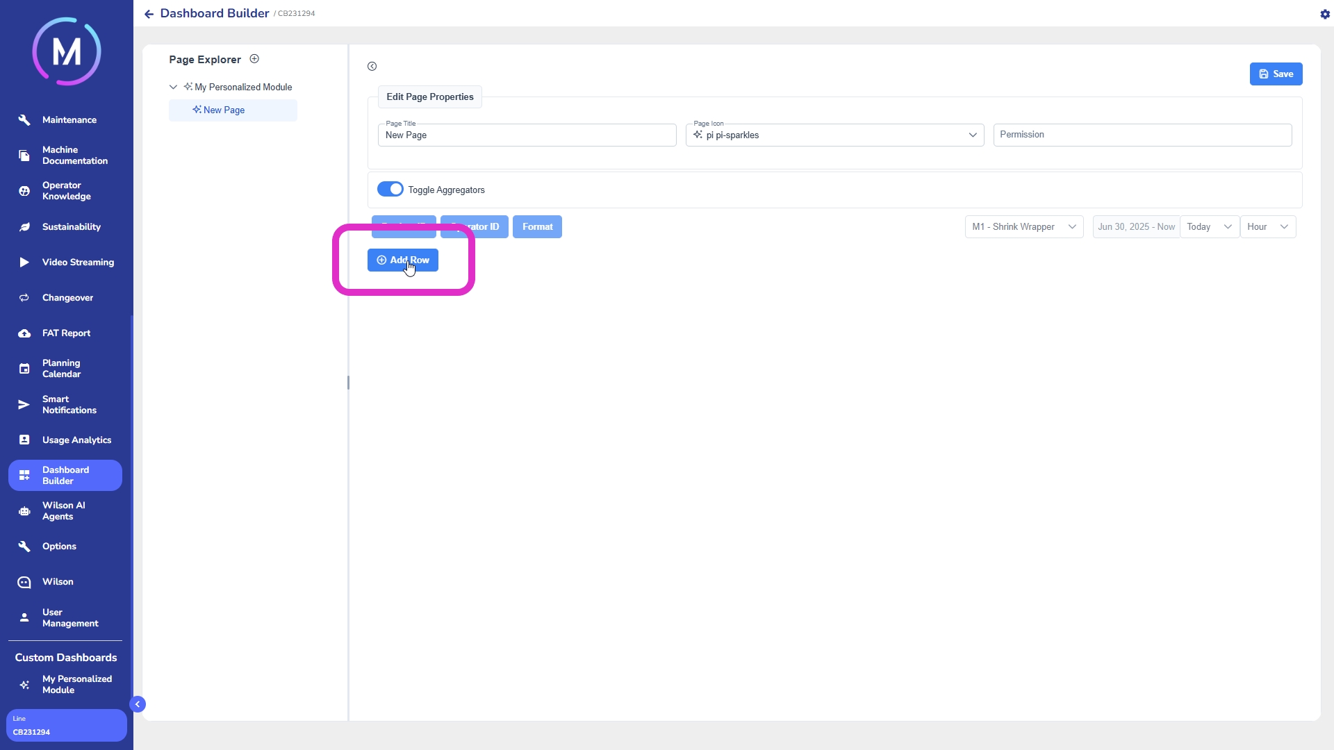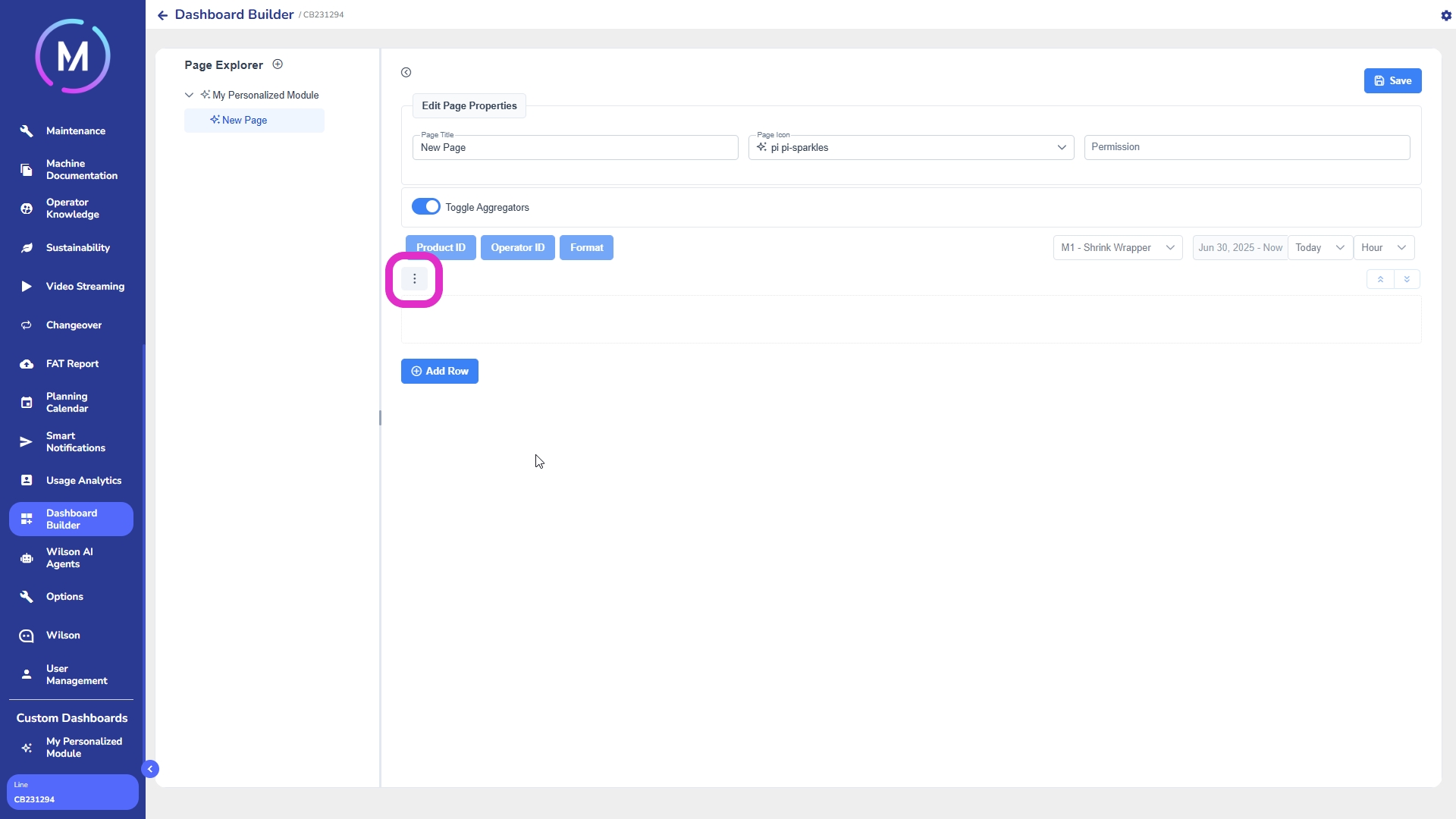 La pagina può essere popolata tramite l'aggiunta di righe. Ogni riga può contenere uno o più widget, ovvero elementi grafici che rappresentano i dati.