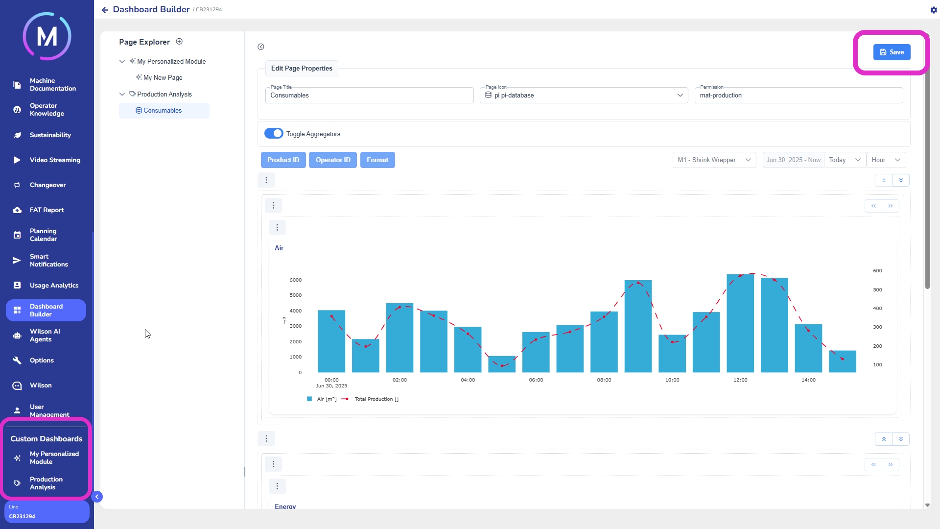 Una volta terminata la configurazione, è necessario cliccare sul tasto Save per salvare tutte le modifiche. Dopo il salvataggio, nella sezione del menù principale dedicata alle dashboard custom, verranno visualizzati tutti i moduli e le dashboard creati dall'utente (Immagine N).