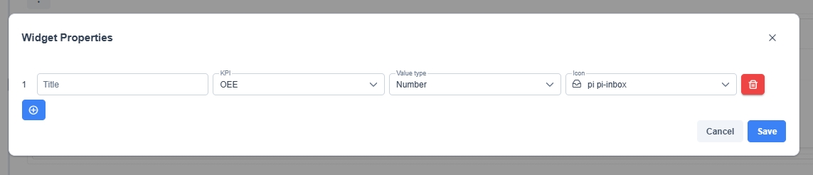 Un semplice componente rappresentante un singolo valore. Il contenuto può essere configurato tramite la seguente finestra. Qui può essere scelto il KPI da mostrare fra quelli disponibili e lo stile grafico dell'elemento.
