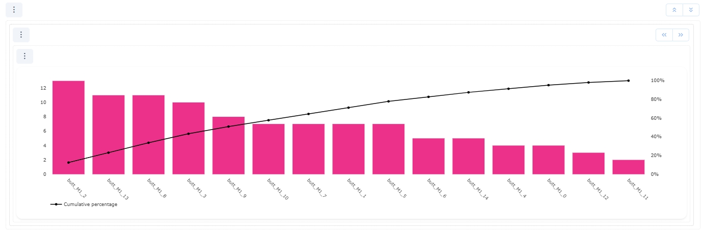 Il Dashboard Builder permette di realizzare una grafico di tipo Pareto per tutti gli eventi registrati. La finestra di configurazione permette all'utente di scegliere la tipologia di evento per la quale realizzare il Pareto e il colore da utilizzare per colorare i bin del grafico.
