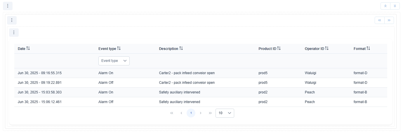 Events: tutti i widget che permettono di rappresentare gli eventi registrati a bordo macchina;