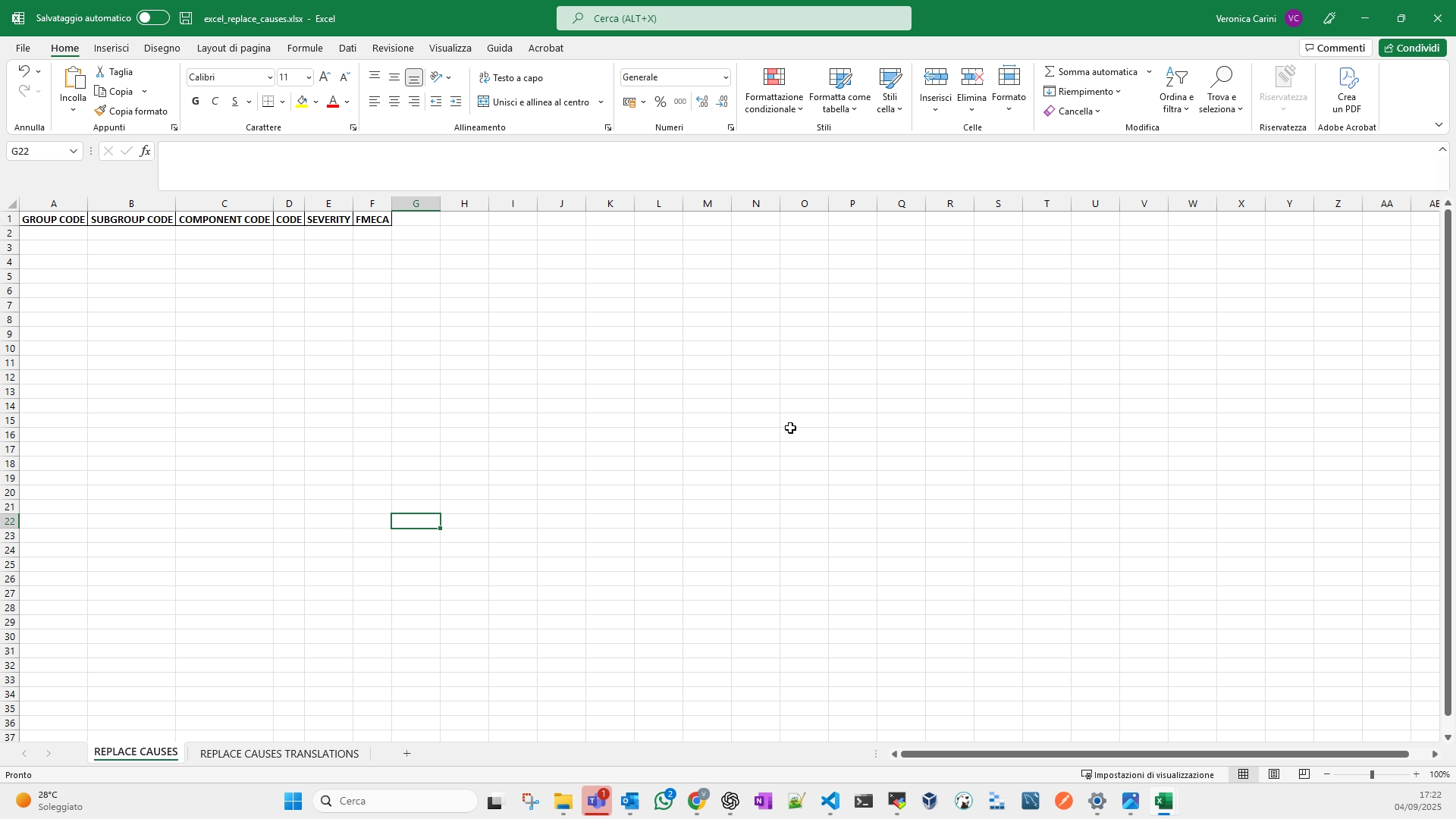 Di seguito un esempio di file Excel delle cause di sostituzione vuoto.