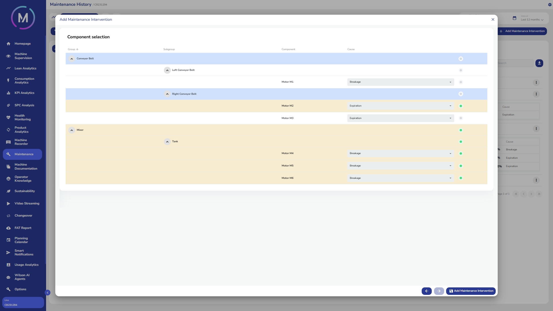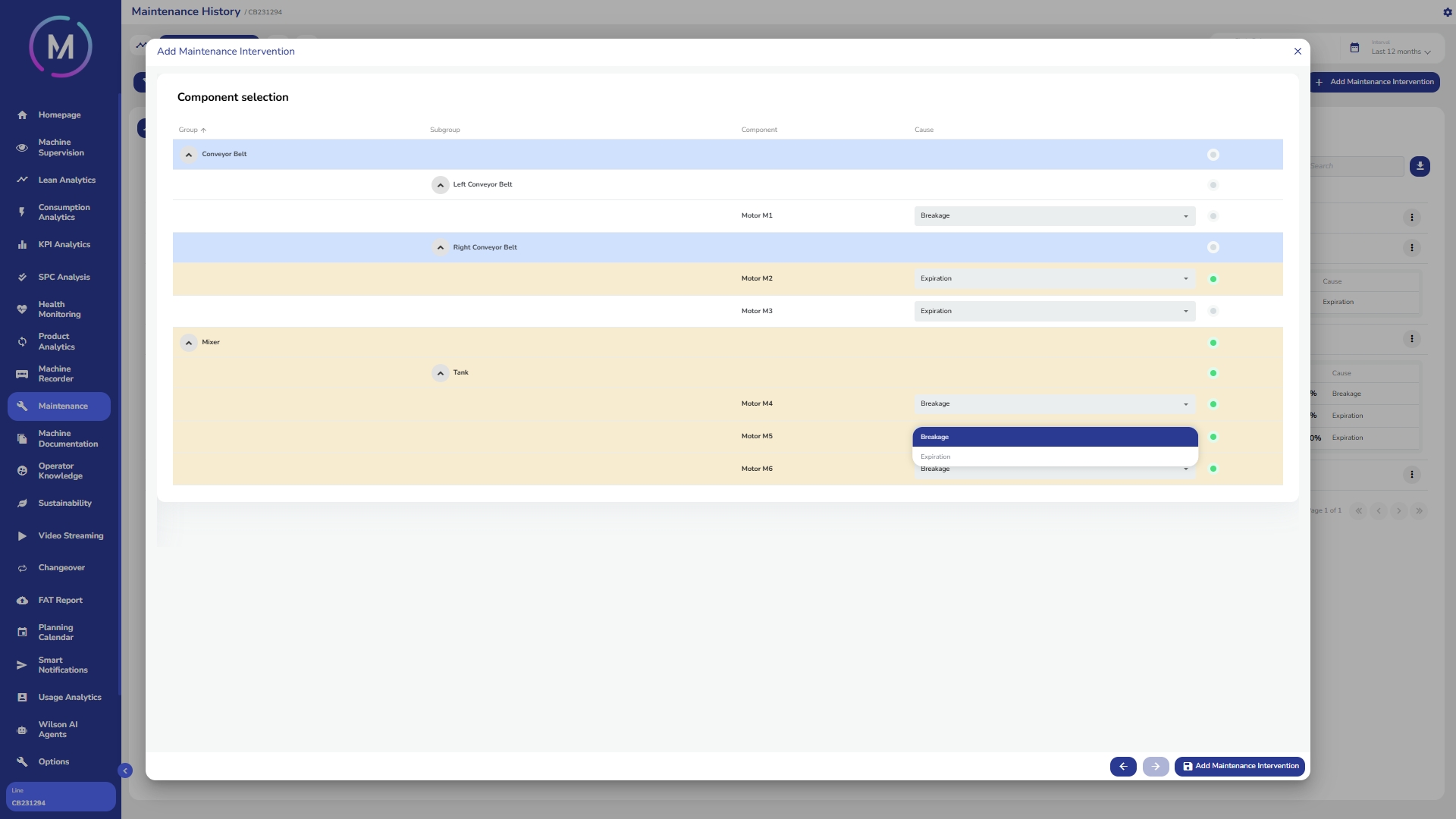 All'interno di una manutenzione possono sia avvenire delle attività, sia avvenire delle sostituzioni di componenti. Per ogni componente è possibile indicare quale causa di sostituzione ha effettivamente comportato la manutenzione.