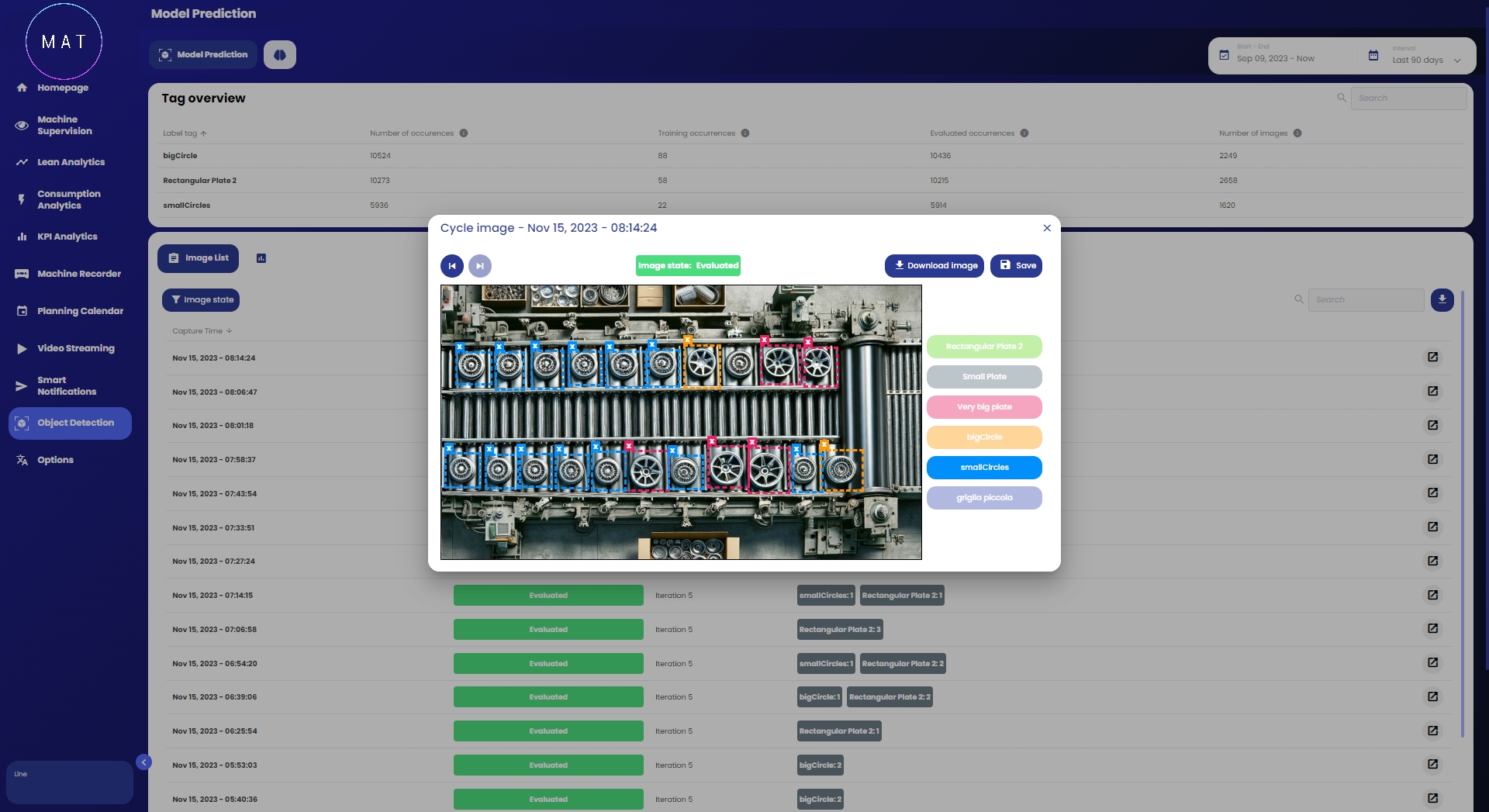 Una funzionalità molto interessante riguarda la possibilità di correggere il lavoro effettuato dal modello. Infatti, quando ci si pone in questa visualizzazione è anche possibile andare a eliminare i riquadri visualizzati, modificarne la dimensione per meglio contenere l'oggetto d'interesse e disegnare nuovi riquadri su oggetti non evidenziati. Se si va a salvare il lavoro effettuato, l'immagine con le sue nuove annotazioni verrà automaticamente inserite nel set di immagini da utilizzare per il prossimo training. In questo modo il modello potrà essere ulteriormente affinato.