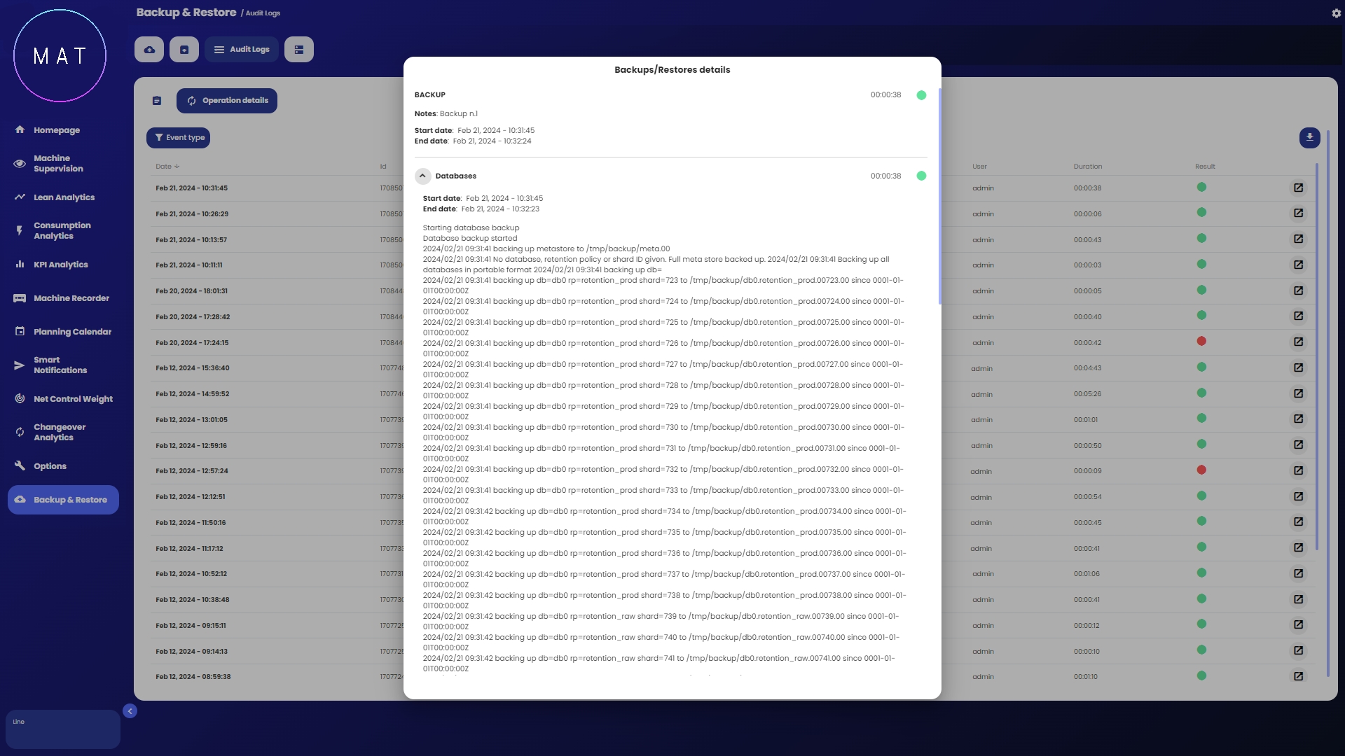 La pagina dedicata al Registro di Audit permette di visualizzare lo storico delle attività che sono state svolte relativamente ai backup.