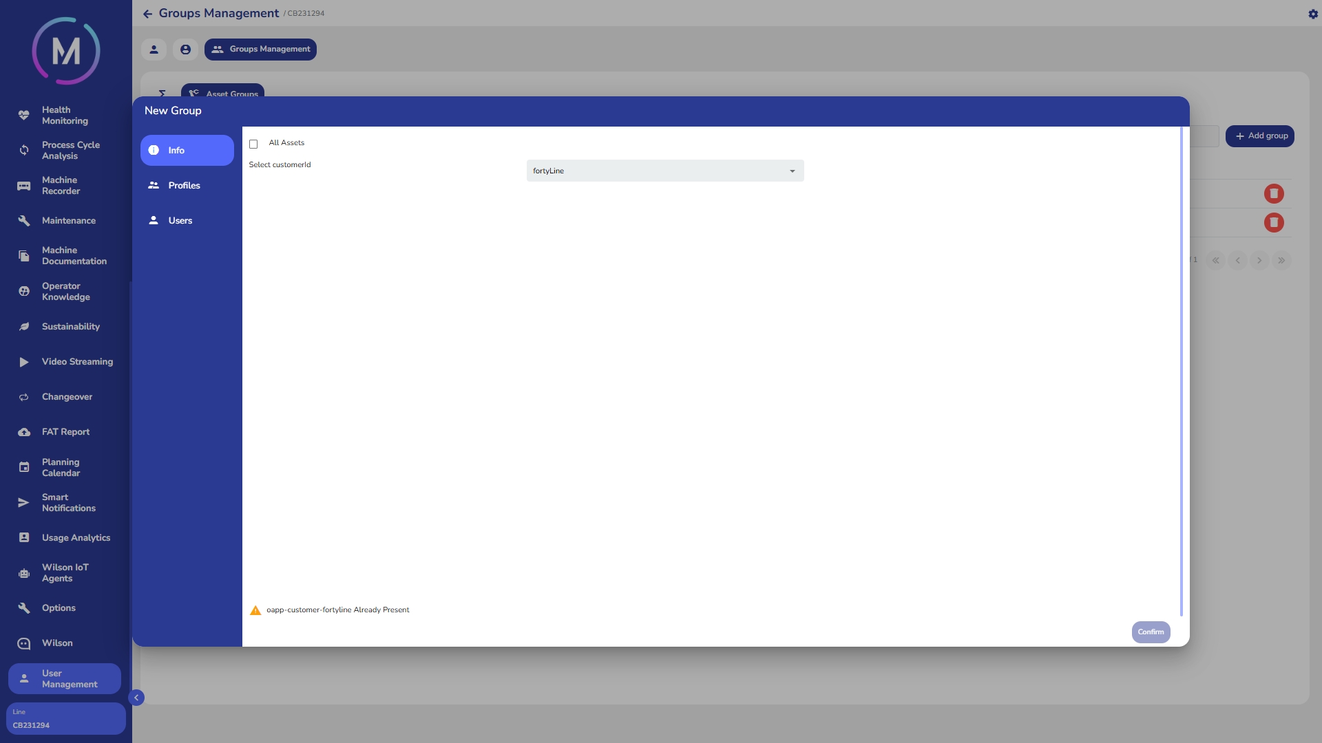 La creazione di un gruppo asset segue una logica iterativa: solitamente, il nome del gruppo viene generato con la struttura oapp-customer-{customerId} dove {customerId} è sostituito dal reale identificativo delle macchine. Tuttavia, in base alla configurazione del progetto, la struttura del nome potrebbe essere più complessa. Per ulteriori dettagli sulla corretta definizione dei permessi, si consiglia di consultare la documentazione specifica.