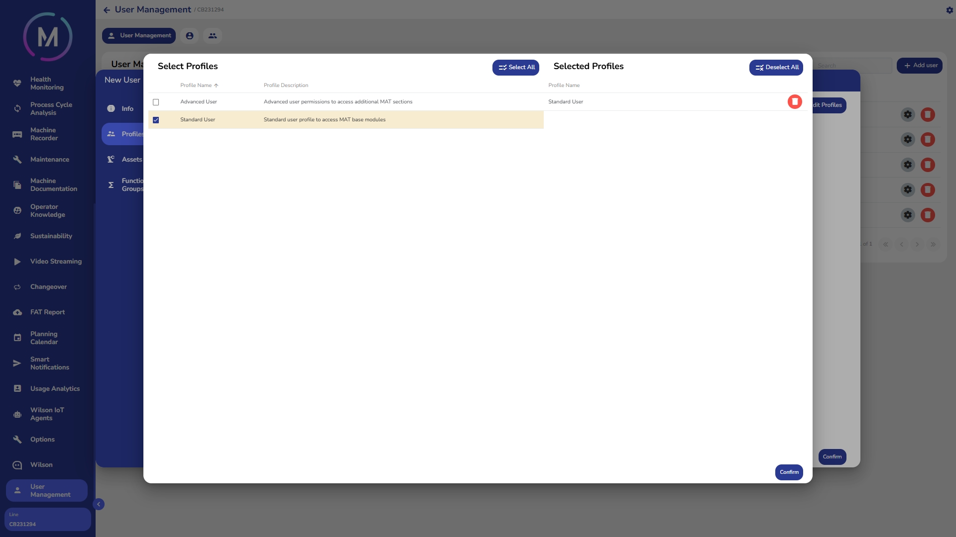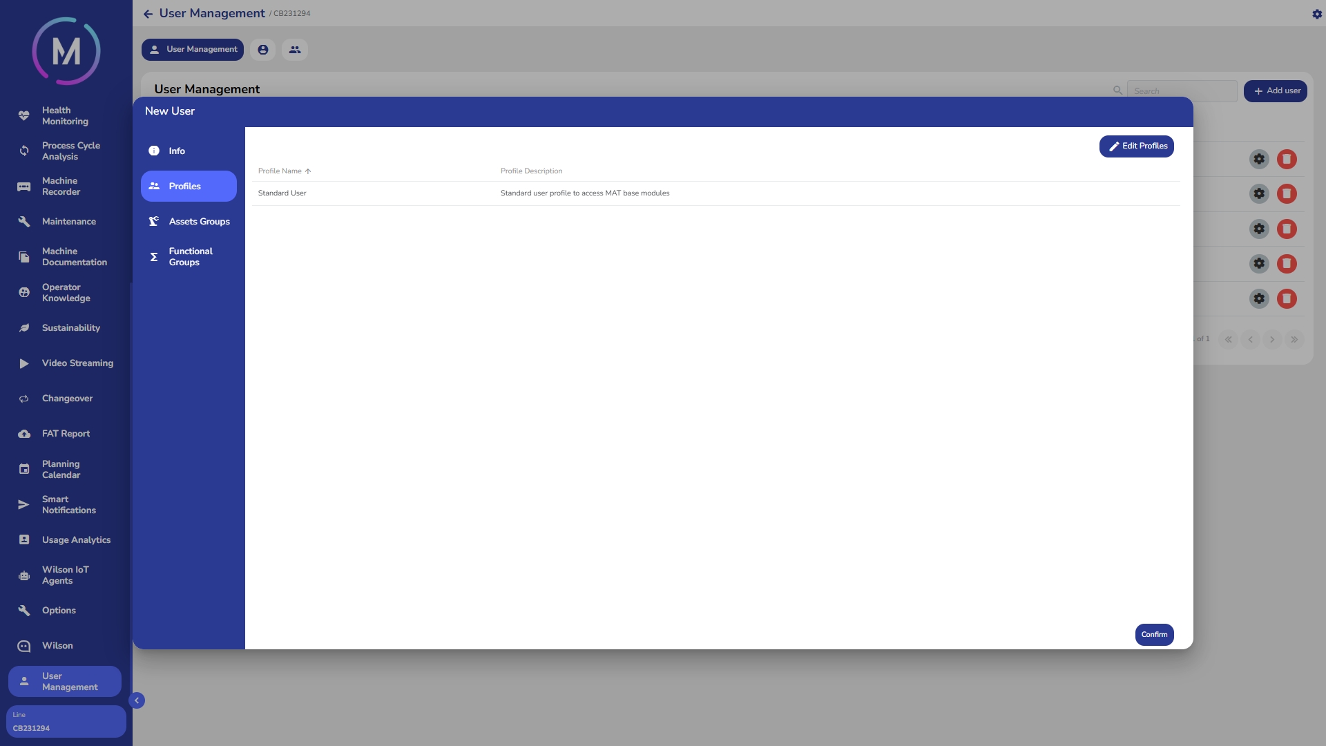 Utilizzando il tasto Modifica Profili è possibile aggiungere profili all'utente. Dopo aver confermato, quelli scelti saranno mostrati nella finestra.