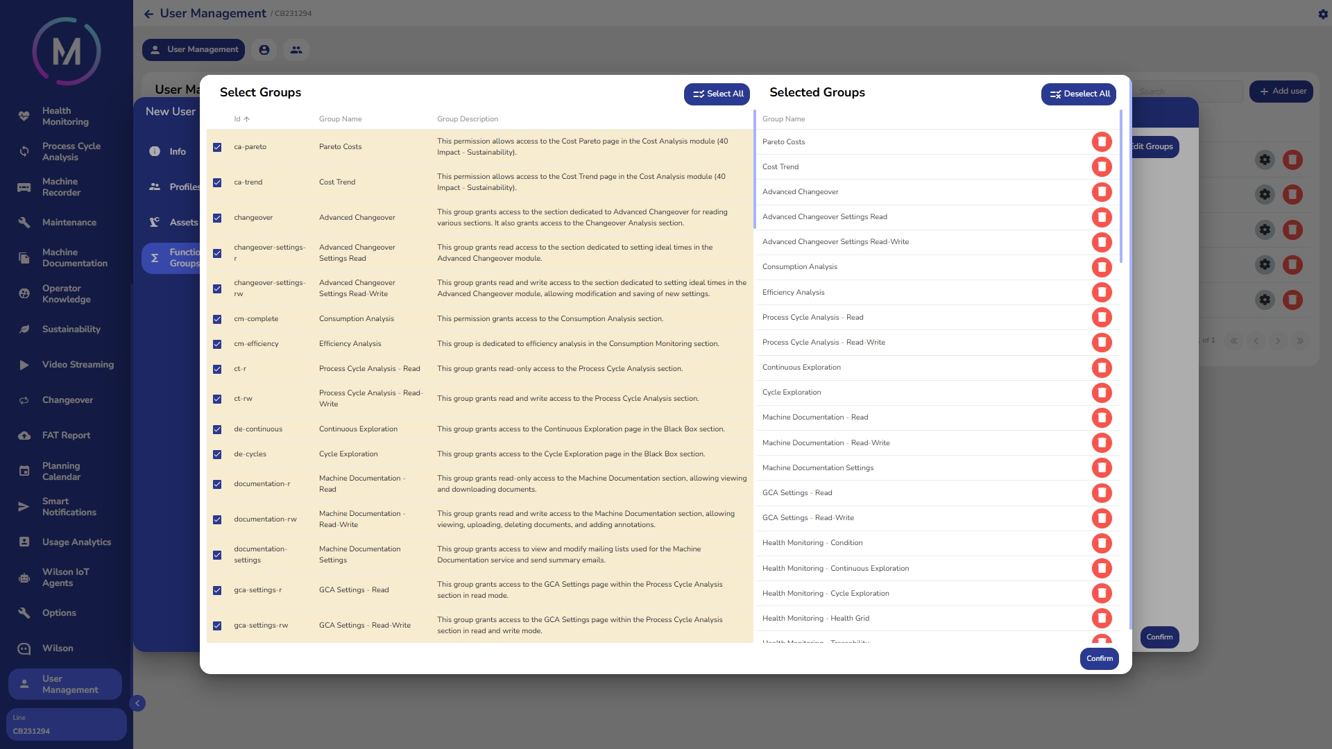 Utilizzando il tasto Modifica Gruppi sarà possibile aggiungere all'utente i gruppi asset che si desiderano scegliendo fra quelli esistenti. Confermando l'operazione, i gruppi scelti verranno visualizzati nella finestra.